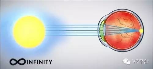 如果眼睛注視著遠方,那注視點是無限遠的。也就意味著光線是平行的,晶狀體處于休息狀態(tài)。